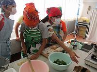 ほうれん草を茹でたグループは、早く終わったため、試食も早くなりました