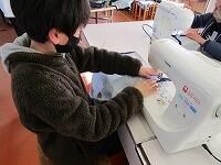 「見て見て~!!こんなに速く縫えるようになったんです!」「すごいね~。僕はまだ心配だから、ゆっくり縫うよ。」「布が厚くなっているところは、スピードをゆっくりにするといいよ。」「ここを見て縫うと、曲がらないで縫えるんだって。さっき教えてもらったよ。」・・・など、子どもたち同士で励まし合ったりアドバイスし合ったりして、学習を深めています。