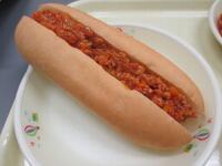 今日は、ミートサンドです。背割りコッペパンに具を挟んで頂きました星