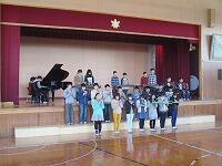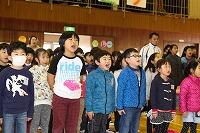 そして、代表児童がオカリナ演奏に挑戦したり、みんなで校歌や「365日の紙飛行機」を歌ったりしました。