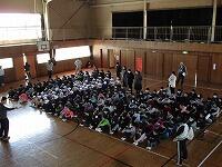 見学はほぼ参加自由の発表会でしたが、全学年からたくさんの児童が体育館に集まりました。