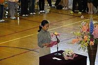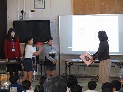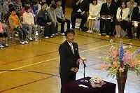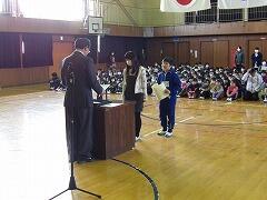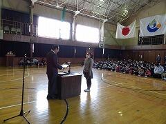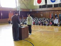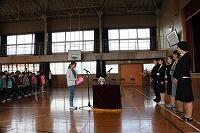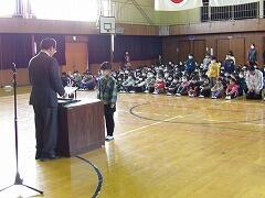 最初に、ちょっと間が開いてしまいましたが11月に転入した2年生児童の紹介がありました。全校生の前で堂々と自己紹介ができました。