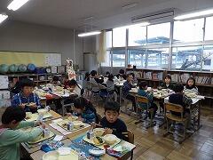 そして1~3年生の教室には、毎朝図書委員が出向いていき、紙芝居の読み聞かせをしてくれています。子ども達は、高学年のお兄さんお姉さんが読んでくれる紙芝居を、楽しみに待っています。