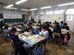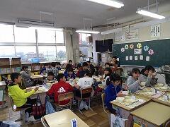 低学年の音楽の授業を参観したり、5・6年生に音楽の授業をしたり、6年生教室で会食したりと、小学校の雰囲気・日課の流れを体感していただきました。