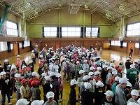 本日全校生が参加して避難訓練を実施しました。今回の避難訓練は、大地震の後、給食室から出火したという想定で行いました。一番遠い教室からでも、避難指示が出てから3分かからずに校庭に集合することができました。