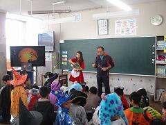 5時間目に外国語活動があった5年生は、思い思いの仮装をして自己紹介をしました。