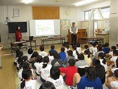 食事・運動・睡眠の大切さ、バランスのよい食事、糖分を取り過ぎないおやつの食べ方など、わかりやすく話していただいて児童たちは、生活習慣を見直し、生活習慣病にならないよう予防していこうと、意識を高めていました。最後の質問コーナーでも、「ゼロカロリー飲料なら、たくさん飲んでも平気ですか?」「特保のお茶などを飲めば、やせられますか?」など、熱心に質問していました。ご家庭でも、ぜひ、お子さんと話し合ってみてください。