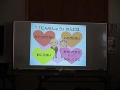 講師として来校されたのは、西方地域包括支援センターの職員と地区の民生委員児童委員の代表の皆さんでした。認知症は、脳の病気であること、いろいろな原因があること、行動の特徴などについて教えていただいた後、寸劇を通してどんな関わり方がよいのかを学びました。