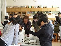 先日の6年生に続き、5年生の家庭科の授業でミシンボランティアの皆様にお世話になっています。5年生は、今回初めてミシンに触るため、ミシンの構造や糸の巻き方・かけ方などから、グループごとに丁寧にご指導いただきました。