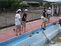 プール内の水生生物(ヤゴやアメンボ)の捕獲から始まり、泥かき、水藻こすり、壁やプールサイド磨きと、2時間たっぷり作業をしました。