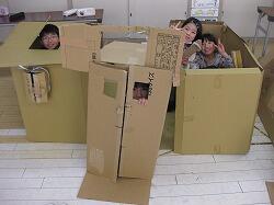 と、思っていましたが、だんだんと作りたいものの形が見えてきたのか、後半は思い思いに段ボールをつなげていきます。