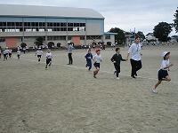 翌日以降の筋肉痛も覚悟の上で、児童に負けじと走ります