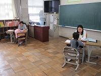 5年生は、2年生の机に寄り添って、目線を合わせて言葉かけをしていました