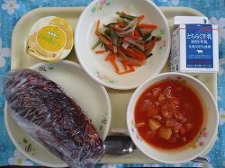運動会後の初給食は、みんなが大好きな「ココアあげパン」でした。口の周りが茶色になっても、手がべたべたになっても食べたいパンです。余ったパンは、争奪戦でしたよ