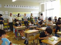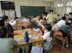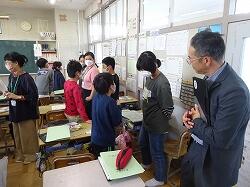 〈6年生〉今年度は、学力向上推進リーダーの指導を受け、教員のスキルアップを図る研修を行っています。この国語の時間は、授業の流れや発問、感想を書かせるスキルについて指導をいただきます。学力向上研修で学んだことが、これからの授業に活かされ、児童に還元されることを大いに期待していますお辞儀