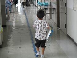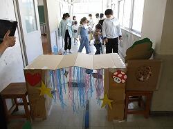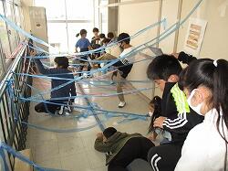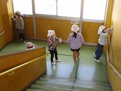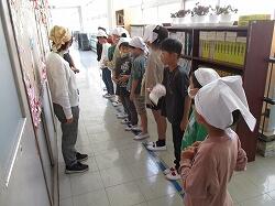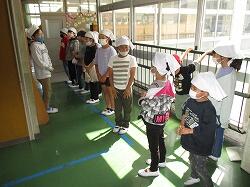 雨雨の昼休み、1年生が、探検バックを持って、校舎内を回っていました花丸