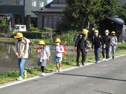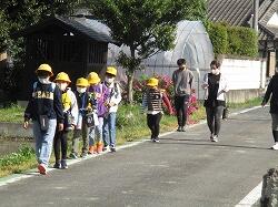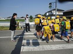 星自助・共助・公助の気持ちを忘れずに、安全・安心して登下校ができるように・・・。「左右・後方の確認」「手を挙げて横断」「目視・耳聴・声掛け」が大切であることを学びました。