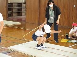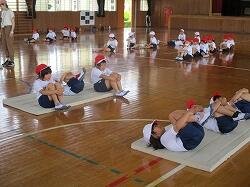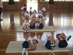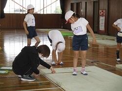 【1年生】体育:マット運動で、前転・後転の練習をしていました。あらら‥体を小さく丸めて、あっちこっちに転がっていますね興奮・ヤッター!