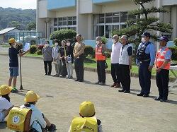 花丸駐在員さん、交通指導員さん、本日はご指導いただき、ありがとうございました。引き続き、児童を温かく見守りくださいますようお願いたします。