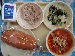 せわりコッペパン ぎゅうにゅう ツナサンドのぐ かいそうサラダ ミネストローネ