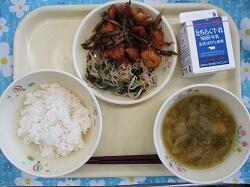 ごはん ぎゅうにゅう とりにくのスタミナやき ブロッコリーのおかかあえ だいこんとワカメのみそしる