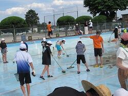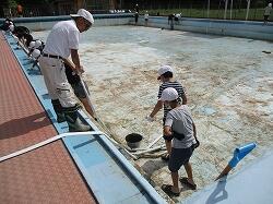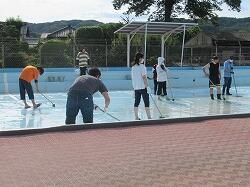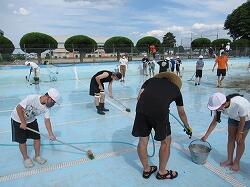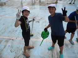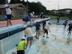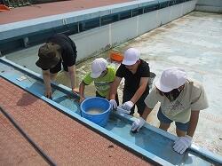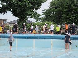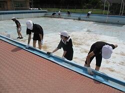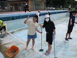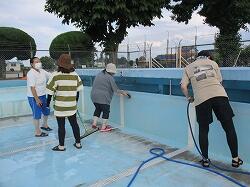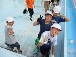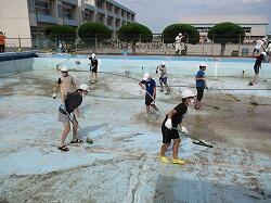 星6月5日(月)の5・6時間目に、5・6年生と教職員でプール清掃をしました。3月まで本校に勤めていらした先生も、最強のボランティアとして参加してくださいました笑う