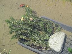 ハート学校運営協議会の協議員さんが、ビオトープに水草を入れてくださいました。