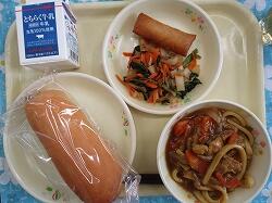 げんりょうコッペパン ぎゅうにゅう ブルーベリージャム はるまき かんぴょうのしょうゆあえ カレーうどん