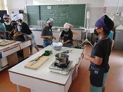 ほうれん草を茹でたグループは、早く終わったため、試食も早くなりました