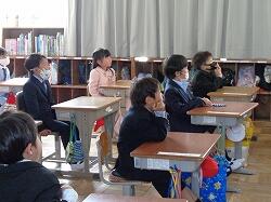 【式の後に・・】体育館で保護者会を行っている間、教室で読み聞かせを聞いて待ちました。「本を読んでもらうの、大好き!」と言っている子がいましたよ
