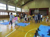 できるだけ窓のないところで、身を低くして頭を守る「だんご虫」のポーズをとりました。狭いところでもがまんして、自分の身を守る方法を学習しました。