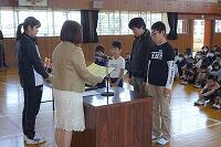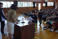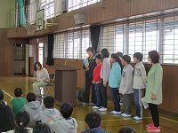 お礼の言葉を、両校から代表児童が発表しました。その後、感謝の気持ちを込めて花束を贈りました。