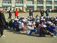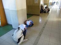 放送時は、緊張してとまどっていた児童達ですが、上級生や近くにいる先生の指示もあり、身を守る体制を作ることができました