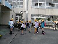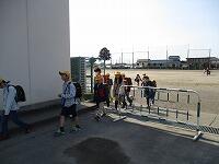 ▲昇降口前で、班長さんの「解散!」の号令で、班は分かれます。