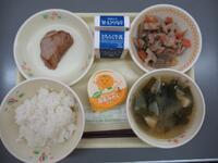 ごはん 牛乳 モロのスタミナ焼き 秋野菜の煮物 豆腐と大根の味噌汁 みかんゼリー