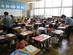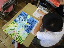 【2年生】図工:絵の振り返り。工夫したことや上手にできたところを言葉で説明しています