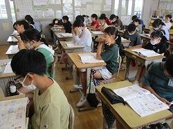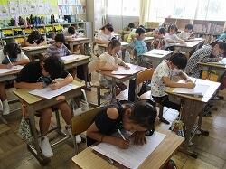 日中、熱くなる前にテストをするという担任の配慮もありそうですね