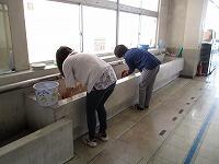 始めに、昇降口に集まって、ご挨拶と施設部の皆さんによる説明…