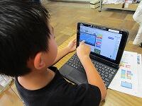 1組:タブレットでプログラミング学習に取り組みました。