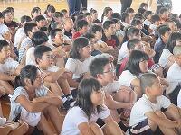 6/15(月)真名子小学校の6年生と、本校の6年生が交流授業を行いました。算数、学級活動、体育の授業を共に行いました。昨年の臨海教室以来の交流ということもあり、最初は緊張しているように感じられました。しかし、一緒に授業を受けたり、給食を食べたりするなかで、徐々に緊張が解けていったようです。最後には中学校での再会を約束し、お互いに手を振って、お別れしました。