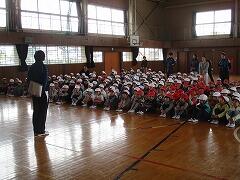 開会後、髙木駐在さんから、登下校についての注意や「いかのおすし」について話していただきました。