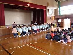 閉会式では、1年生からのプレゼントを渡し、年長組さんからはお礼の歌やお礼の言葉をもらいました。