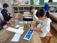 「メタモジ」を使い、図工作品の画像を編集する作業です