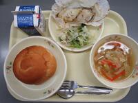 はちみつパン 牛乳 銀だらの香草焼き 花野菜サラダ ジュリエンヌスープ