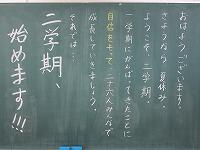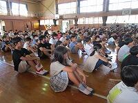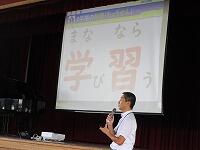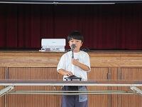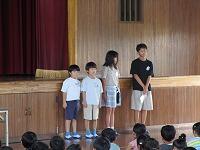 お知らせ続いて、学校長より、夏休み中の2つの約束がよく守れていたことや、2学期は、「聞く・聴く・訊く」ことを意識して「学習(学び習う)」していくという目標について話がありました笑う