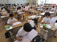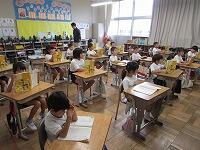 【2年生】1組は書写、2組は新しい漢字を練習していました。どちらのクラスも、ゆっくり丁寧に書くようにと、指導されていました。