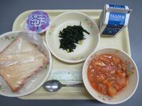 メイプルミルクトースト 牛乳 チキンビーンズ ほうれん草のソテー ぶどうゼリー