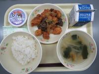 ごはん 牛乳 鶏肉と大豆の味噌がらめ やみつききゅうり すまし汁