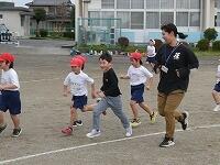 翌日以降の筋肉痛も覚悟の上で、児童に負けじと走ります了解