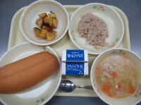 背割りコッペパン 牛乳 ツナサンドの具 大学芋 アルファベットスープ